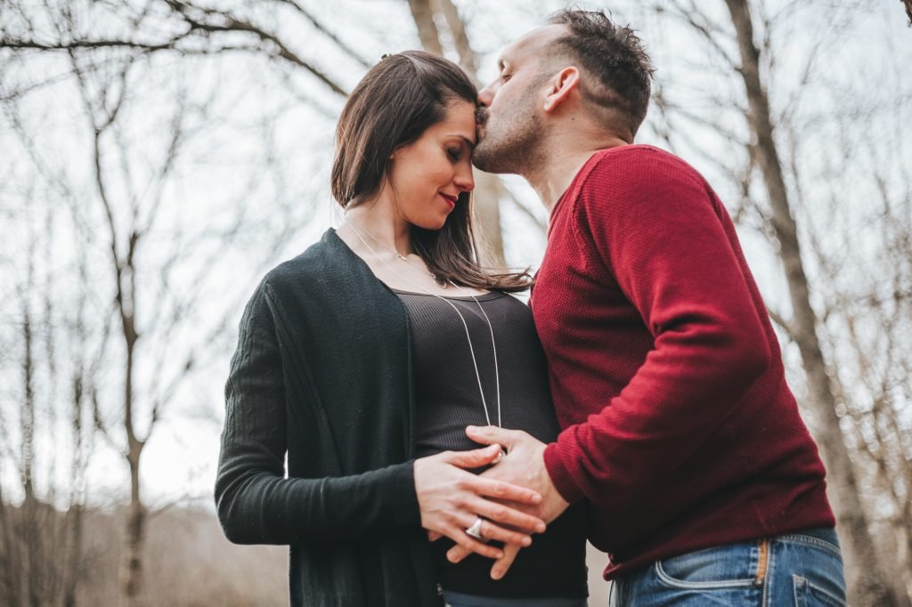 Con Shari e Lucio siamo stati a fare una passeggiata nel bosco del Parco di Valle Gelata. La giornata era piuttosto fredda, di pieno inverno. Camminavamo immersi nel silenzio, rotto solo dal rumore dei nostri passi sulle foglie cadute e da qualche parola. Il cielo coperto ci ha regalato una luce molto morbida, e ha reso il bosco invernale ancora più suggestivo. Verso la fine della passeggiata e dello shooting un timido raggio di sole ci ha salutati prima di tramontare, regalandoci qualche scatto del pancione in controluce. Questi colori e queste luci invernali ricorderanno per sempre a Shari e a Lucio l’atmosfera di quelle ultime settimane, prima di conoscere loro figlio.